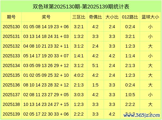 红球大小比为4:2,奇偶比为3:3,012路比为2:1:3,蓝球开出少量。